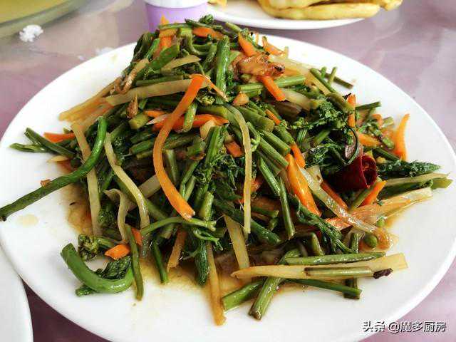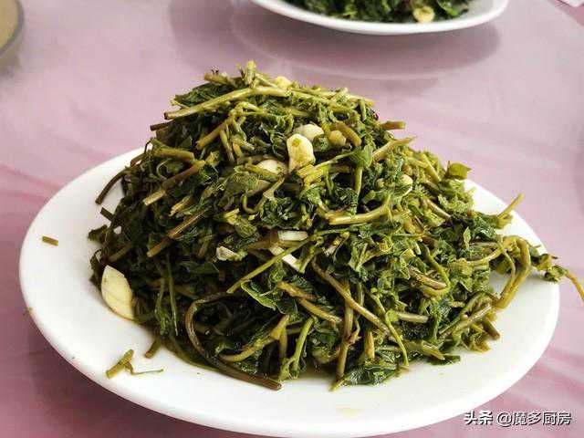 2、不认识的野菜,我看了半天也知道这是什么菜,应该是焯了水后和大蒜一起调味凉拌,有点儿苦,口感发酸,应该是放了不少的醋,想掩盖野菜本身的苦味,有人知道这是什么野菜吗?