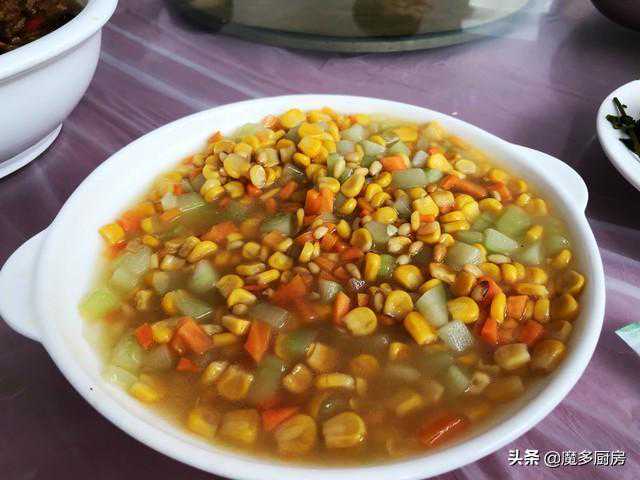 9、松仁玉米,除了松仁和玉米粒以外还有黄瓜丁和胡萝卜丁,不算农家菜了。