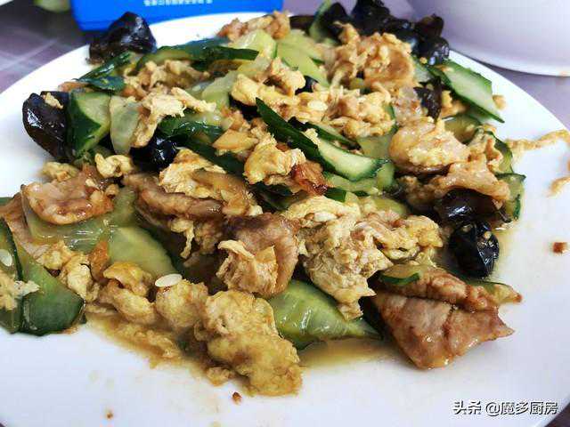 13、木须肉:肉片、鸡蛋、黄瓜、木耳,简单的家常菜,也比较下饭。