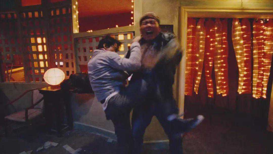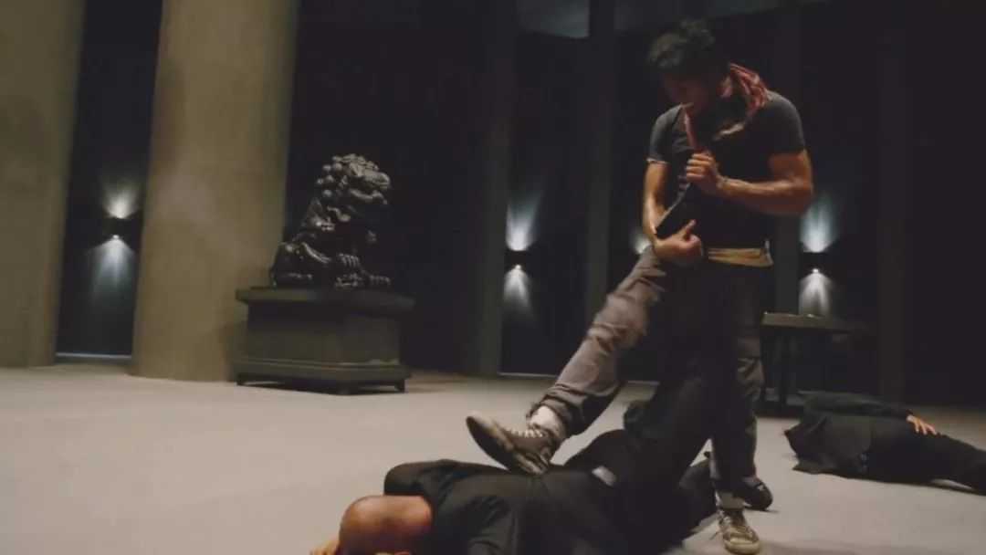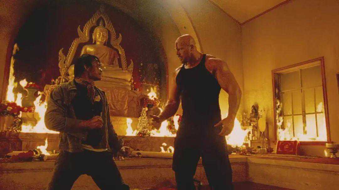 这场打斗又致敬了托尼·贾的偶像成龙,多处闪转腾挪都像极了成龙式打斗风格。