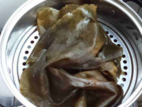 而如果我们先蒸一下海带的话,就能大大缩短泡发海带的时间。并且由于没有大力度的清洗海带,还能很好的保留下海带表面的甘露醇,从而能更大限度的保留下海带的营养。