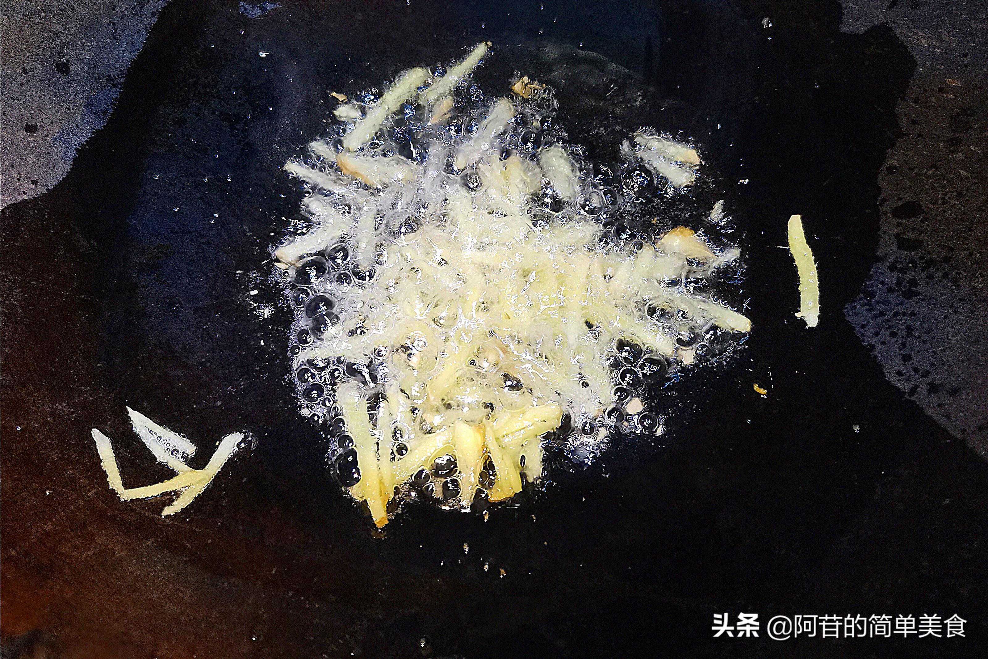 3.准备一只锅,先把锅烧热,然后放入猪油,用热量将猪油慢慢融化,再倒入姜丝炒出香味。