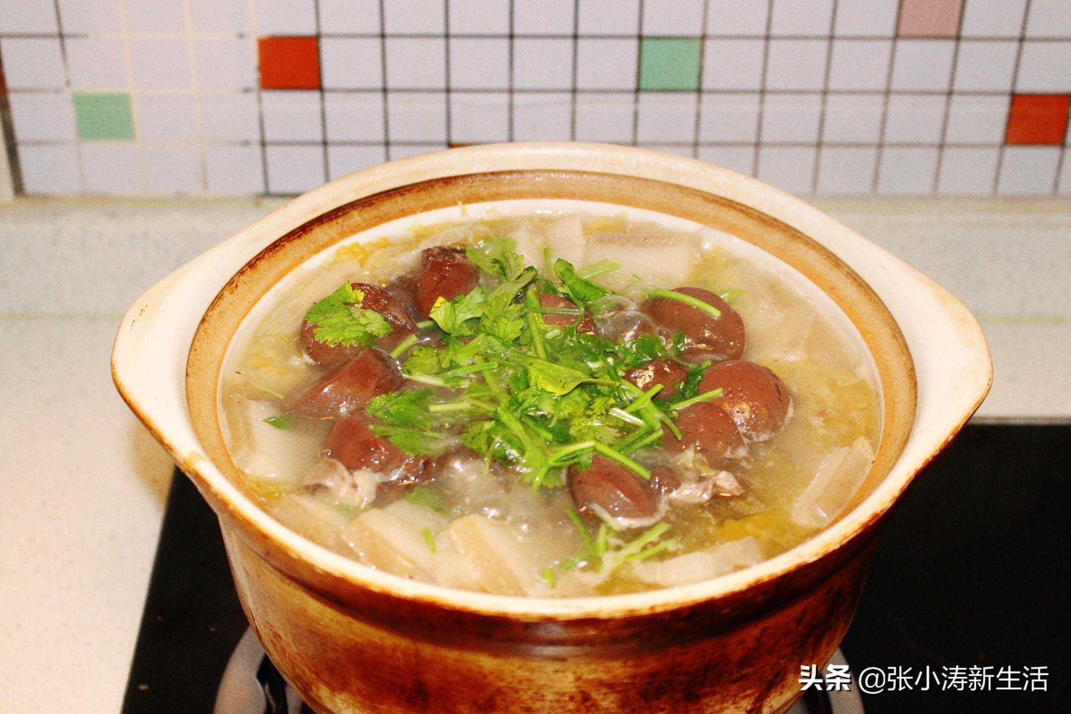 4.把酸菜炒好放入砂锅,然后把之前炖肉的汤倒里面,如果不够可以加水。炖20分钟以上,酸菜不怕炖,越炖越好吃。
