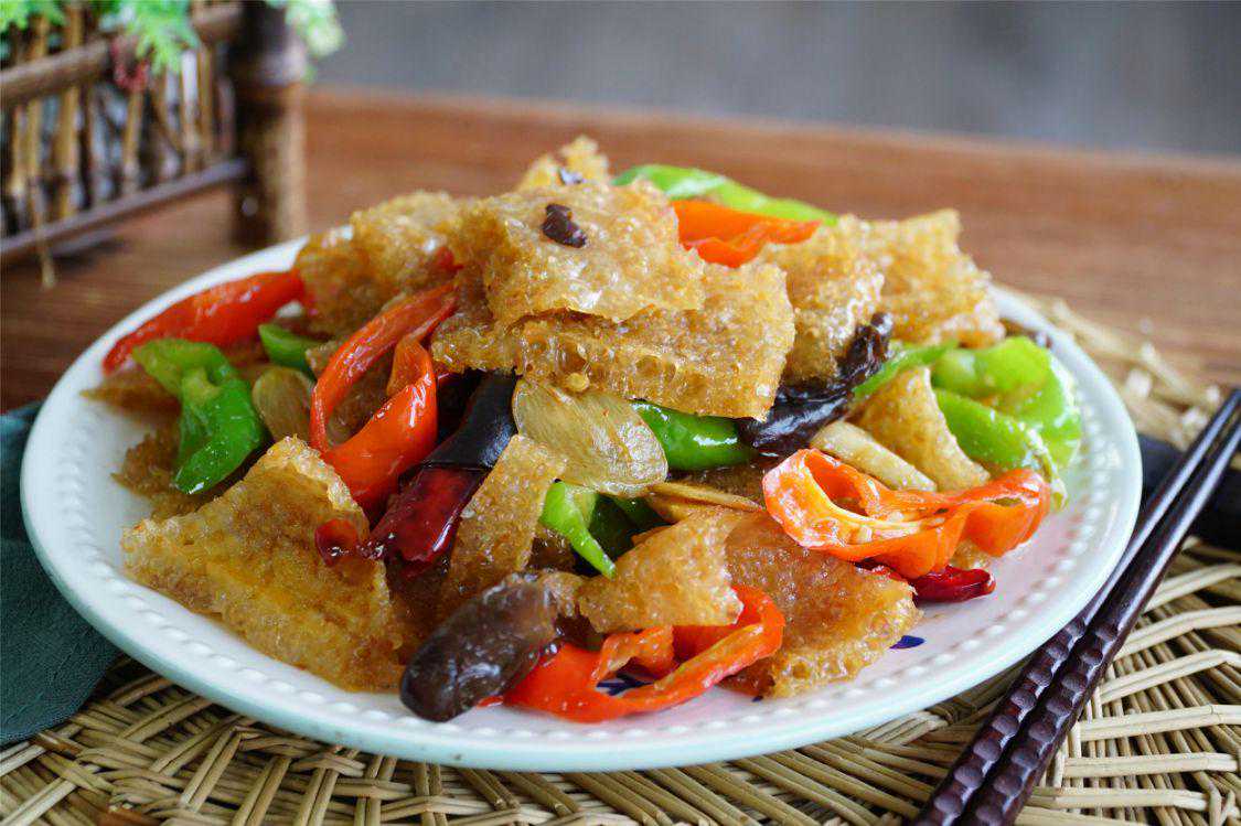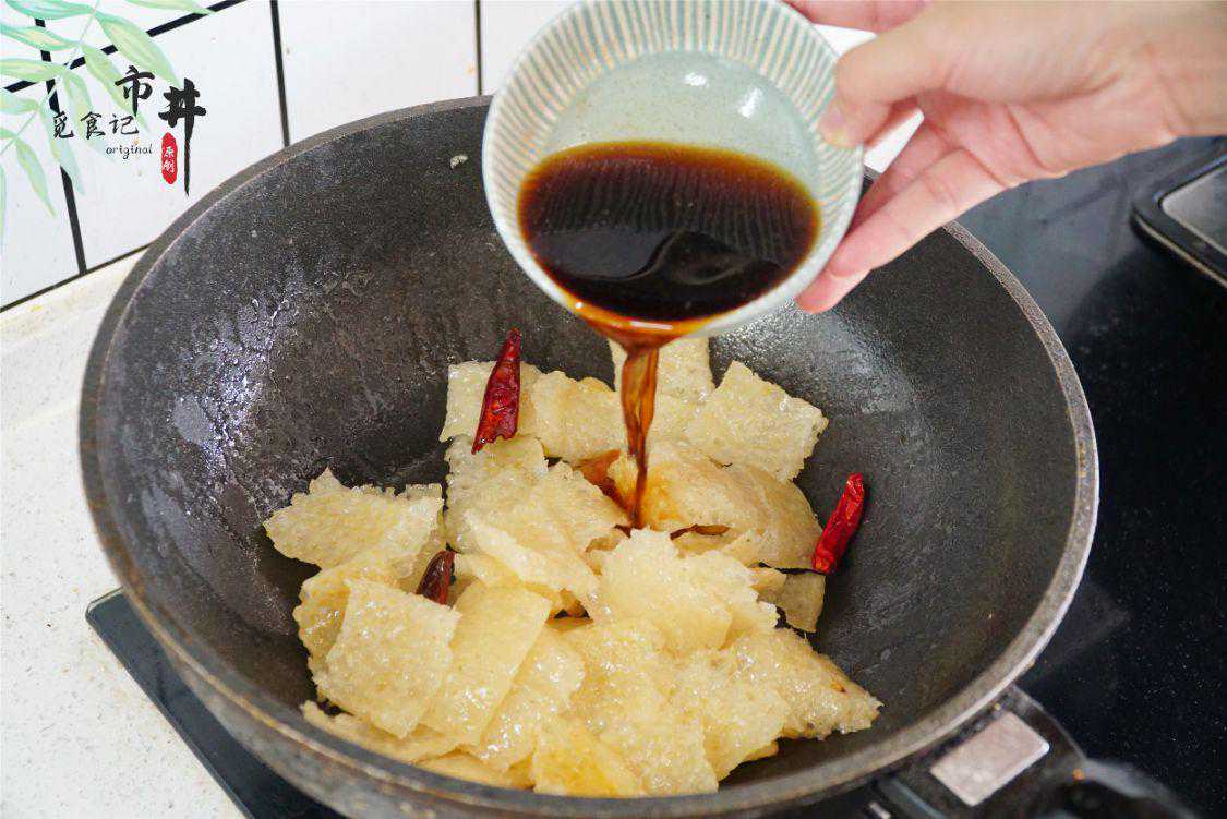 四、【辣烧皮肚】夏季天热,想要解馋选皮肚准没错,虽然是油炸食品,但最后皮肚中所残留的油脂很少,吃起来一点也不腻,还有一丝脆爽,与辣椒搭配在一起,微辣清爽很下饭。