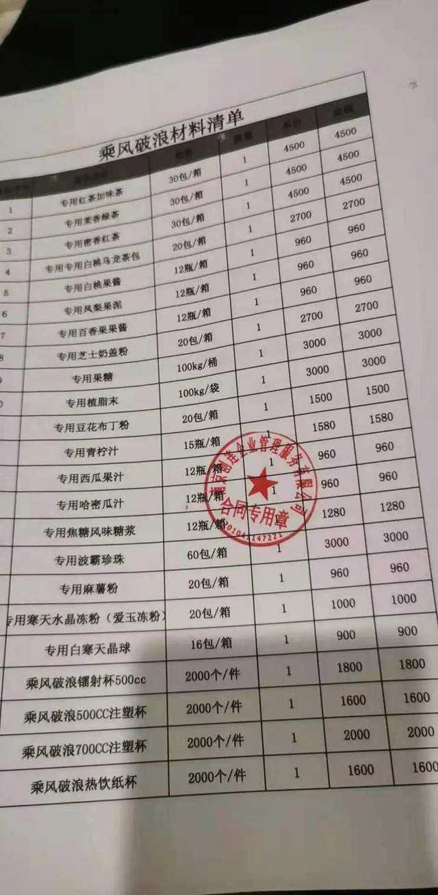 据他说,“乘风破浪”是某位香港明星代言的,虽然现在知名度不高,但公司后期准备投放很多广告营销,把品牌做起来,未来会成为像蜜雪冰城、CoCo都可那样的连锁大品牌。至于门店选址、原料采购、员工培训等问题,公司都会统一安排,开业时也会派人来协助。