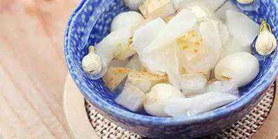 2.加入适量冰糖,一起放入炖盅里炖1~1.5小时,一盅清润滋补的甜汤就做好了。