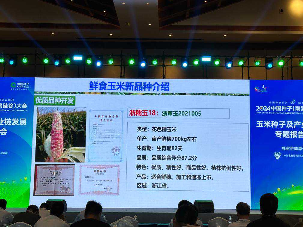 企业在2024中国种子(南繁硅谷)大会上展出的优质玉米品种。新华社记者程潇摄