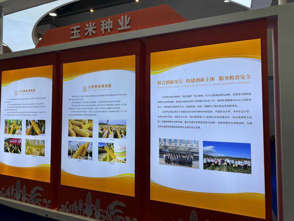 企业在2024中国种子(南繁硅谷)大会上展示其玉米育种创新攻关情况。新华社记者郁琼源摄