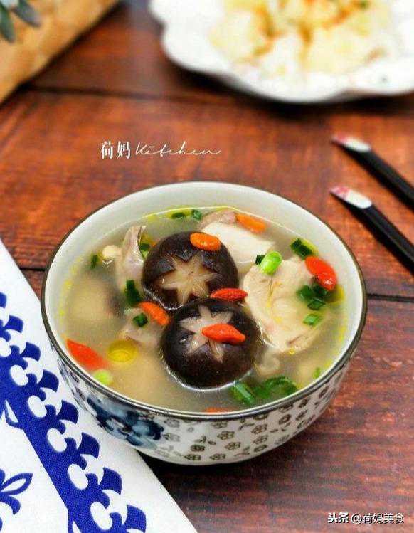食材:走地鸡半只,干香菇一大把,生姜一块,葱一小把,当归少许,枸杞一把,料酒一勺,盐和胡椒粉适量