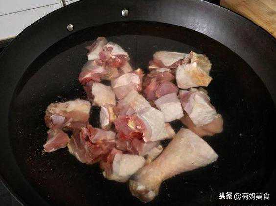 锅里加水,鸡肉块冷水入锅,大火煮开之后撇去浮沫捞出,用流水冲洗干净捞出备用
