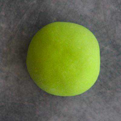 2、将200克面粉和105克菠菜汁混合搅匀,揉面至面团表面光滑。