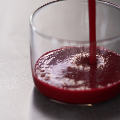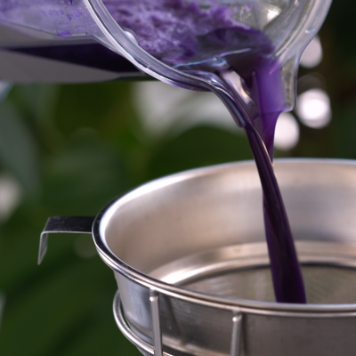 5、你也可以尝试调整紫椰菜和水之间的比例,就能调出不一样深度的紫,像图左边的深紫色用的就是上面食谱的比例,而右边的浅紫色是用了同样重量的紫椰菜,但水量更多。