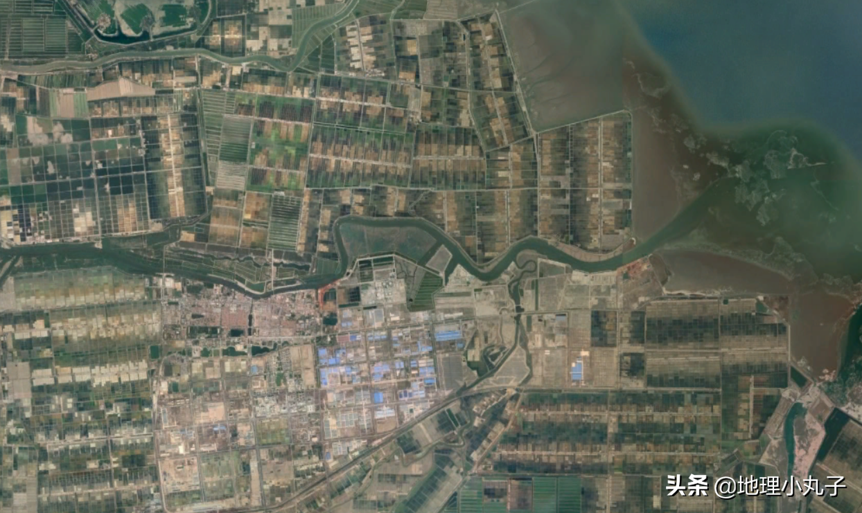 寿光的地貌深受人类生产活动影响。与南部的土地被大棚覆盖不同,北部滨海地区被分割成一个一个的方块,用于晒盐,而且颜色各不相同,犹如地球的像素块。