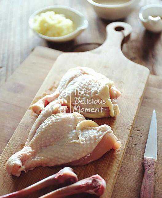 1、将鸡腿洗净,剔骨后切断鸡肉的筋,装盘备用。