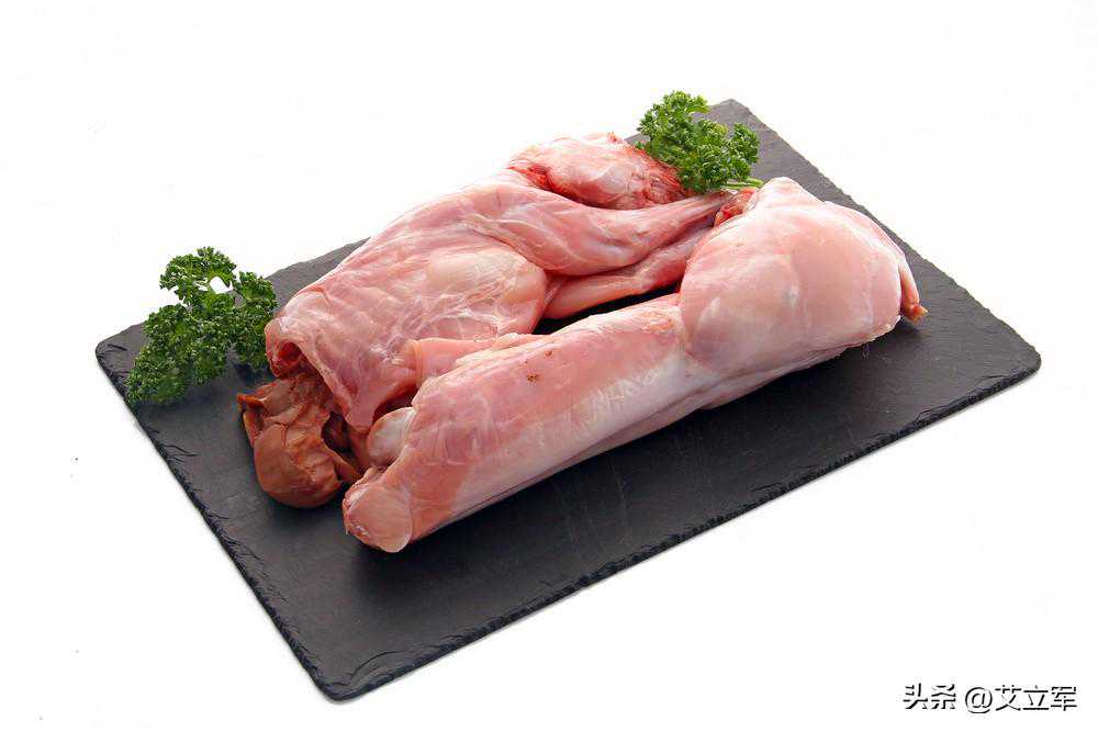 第一步:兔肉在室温下解冻,用清水泡除血水捞出,沥净水分切去头部。