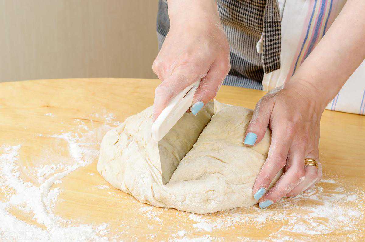 将发酵好的面团,按照要求分割出若干等份的面团。我们在分割称重的过程中,需要多注意:在烘培的过程内,面包中的水分会蒸发,使面包的总重量减轻,减少的水分重量约占面包中的10%—13%。因此,100g面团需要增加面团10g--13g,以补充在烘烤中流失的水分重量。