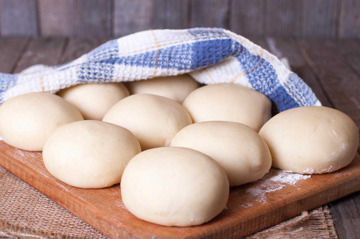 这里是面团中间发酵。首先将揉圆的面团均匀摆入烤盘内,需要静置发酵30—40分钟,使面团的面筋松弛,以方便操作整形。如果是大量的制作,最好把面团放入发酵箱内静置发酵。如果是少量生产制作面包,同样可以将面团直接放入在温度26℃-28℃的操作间内,盖上保鲜膜,防止表面风干,不好操作整形。