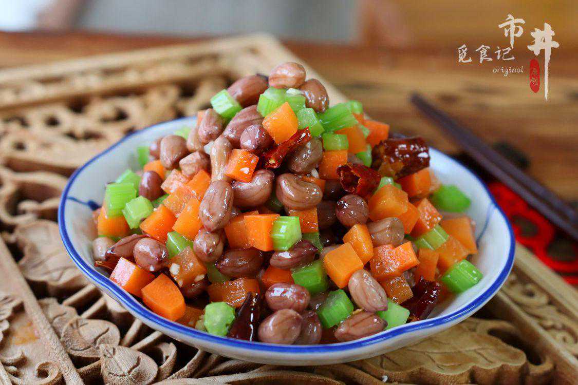 六、【水煮花生米】所需食材:芹菜1把、胡萝卜1根、花生米1碗。
