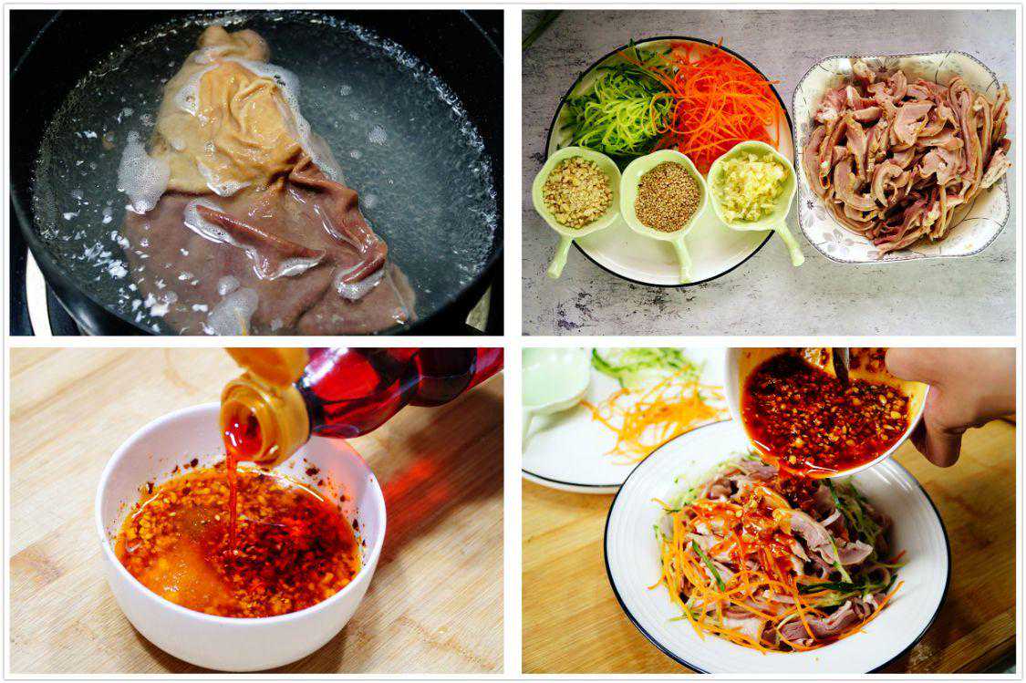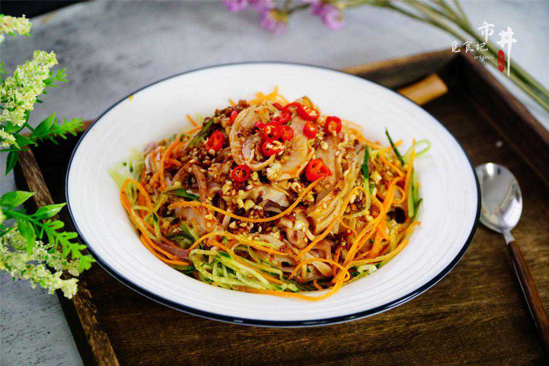 十一、【红油肚丝】主料:猪肚、胡萝卜、黄瓜、花生、胡萝卜。