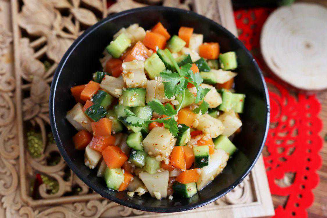 十二、【凉拌素三丁】所需食材:莲藕、黄瓜、胡萝卜。