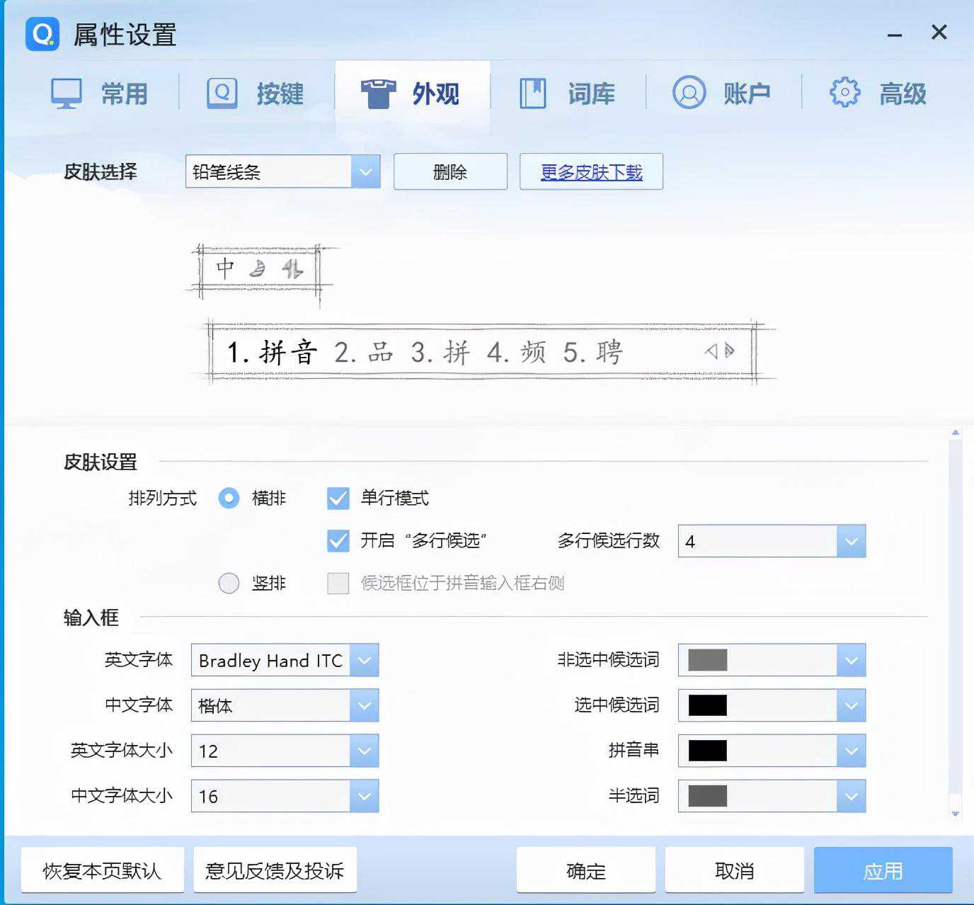 之后则是搜狗输入法的界面设置,自定义程度非常高,可以个性化的皮肤有很多。
